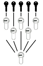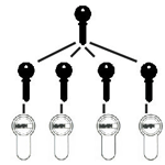 We can offer a complete keying service for a wide range of locks. Keyed alike or masterkeyed depending on your individual requirements. The diagrams on this page page show the most popular keying options, these can all be carried out in-house meaning faster service and better backup in the future, when additional locks and keys are required. Locks available for this service range from standard 5 pin systems to patented high security cylinders with key duplication restriction.